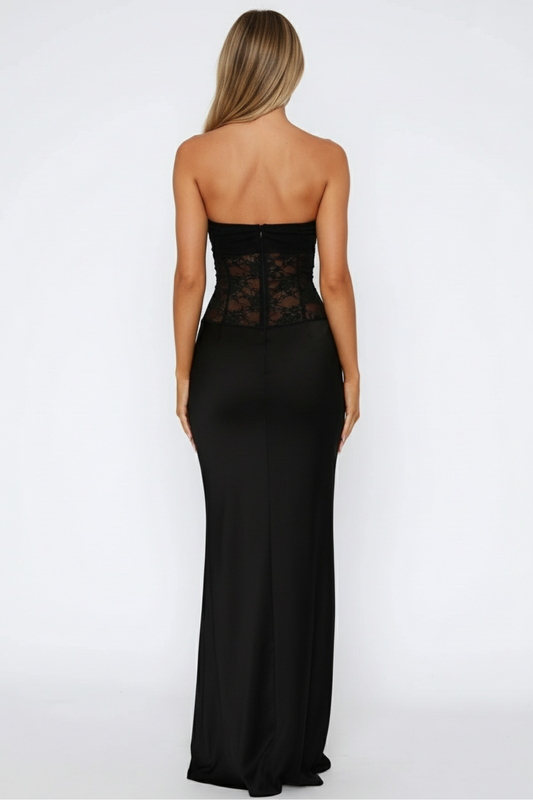 Robe Maxi – Élégance Sans Bretelles avec Dentelle et Coupe Sirène